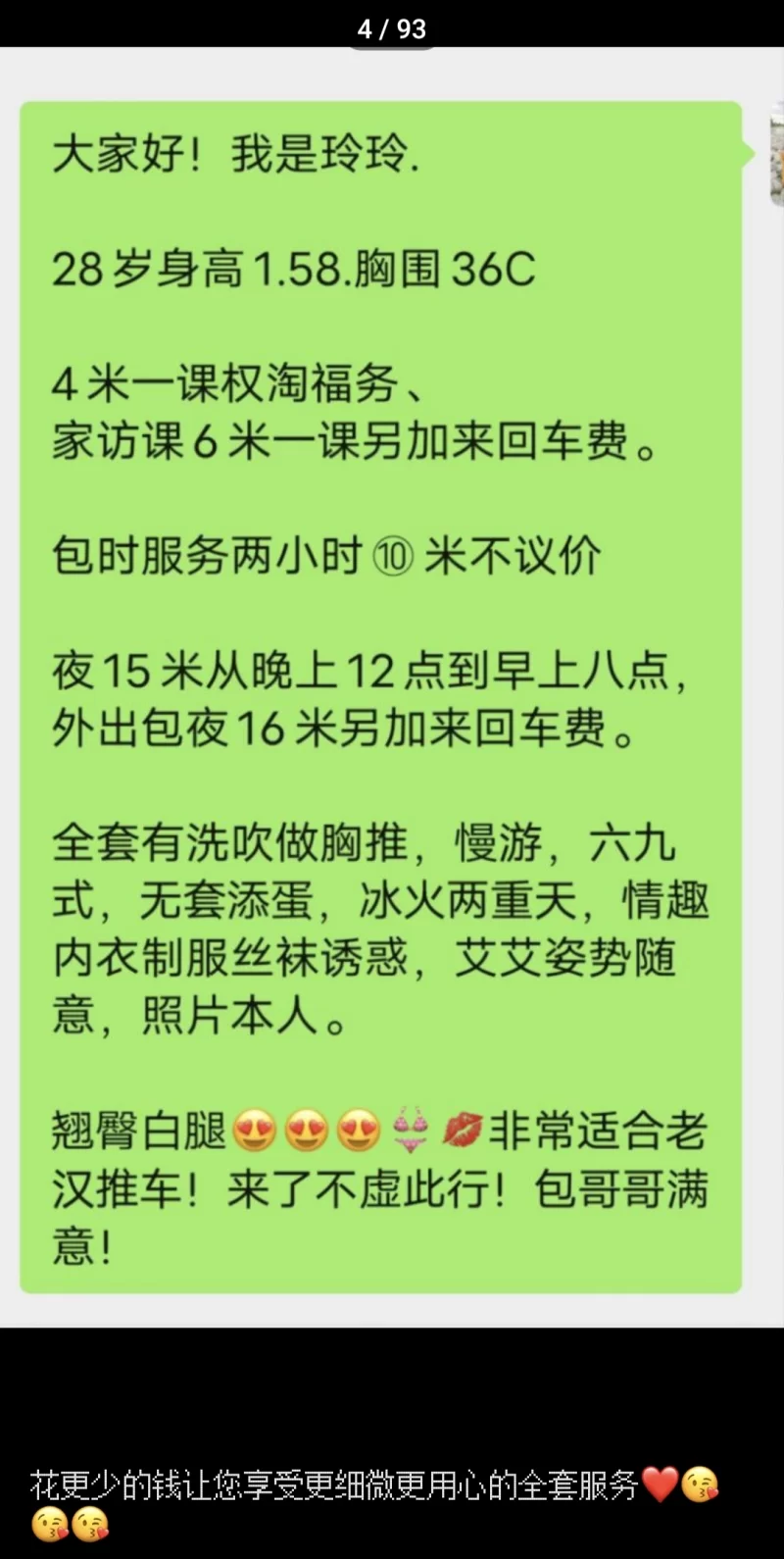 服务项目: 胸推,漫游,69,情趣制服